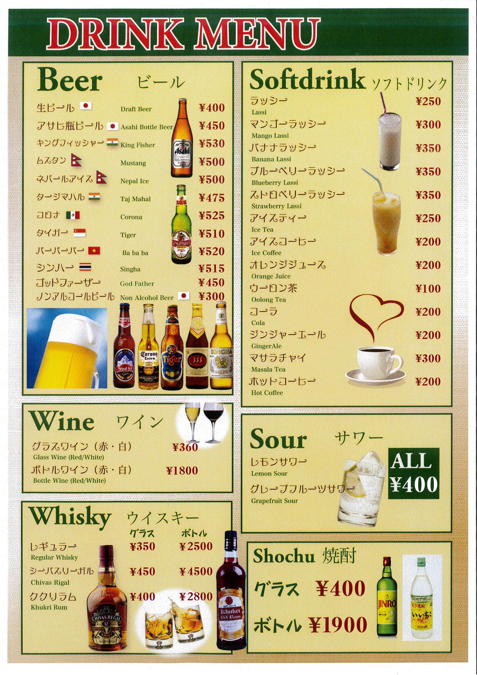 Drink Menu/ ドリンクメニュー
